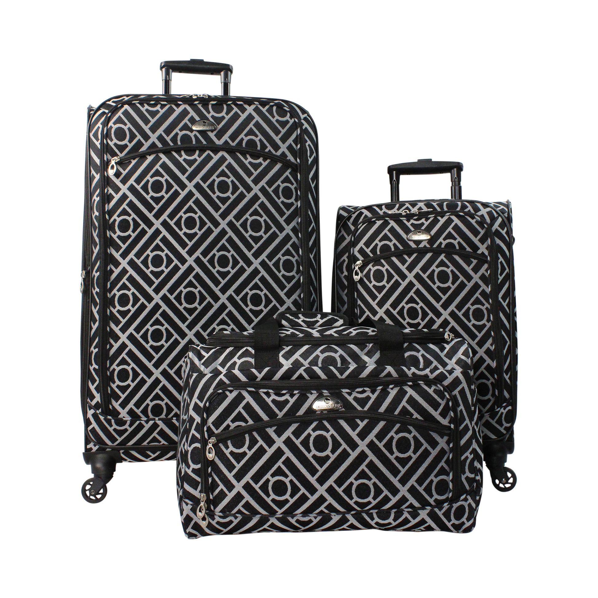 The American Flyer Astor Collection 3-Piece Spinner Luggage Set includes all the essential luggage pieces you need for every and any trip. The 28" check-in luggage piece is perfect for longer excursions while the 22" carry-on and stowable duffel bag will have you ready for a weekend getaway or overnight trip. The coordinating pieces are designed with an easy to spot geometric print.