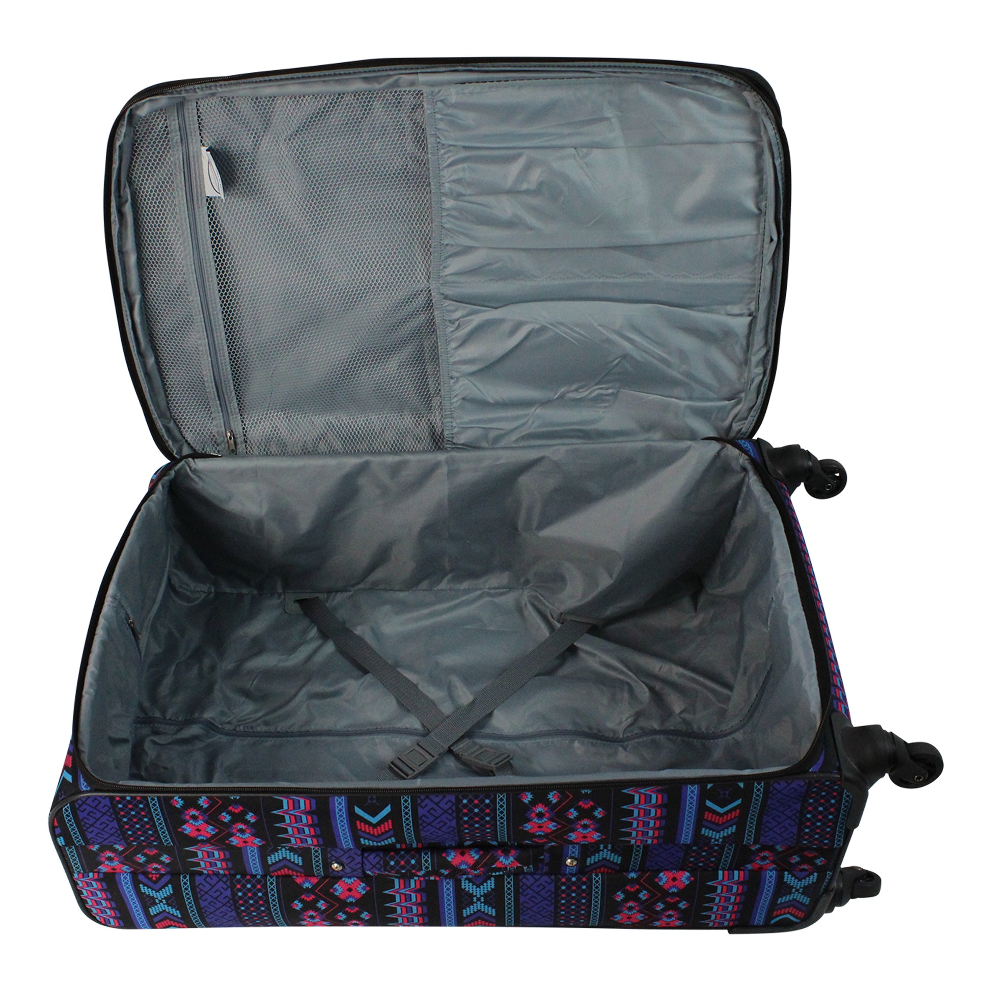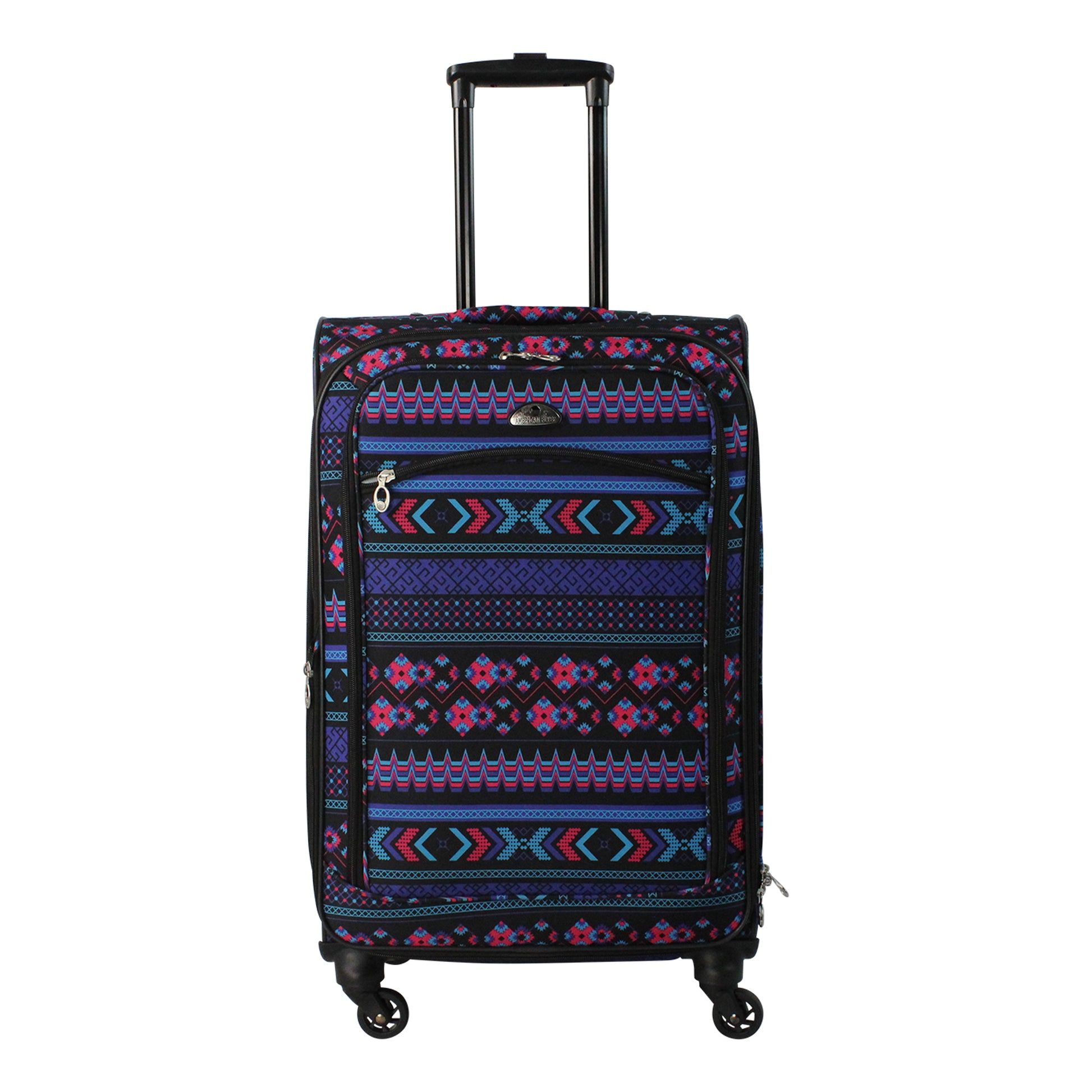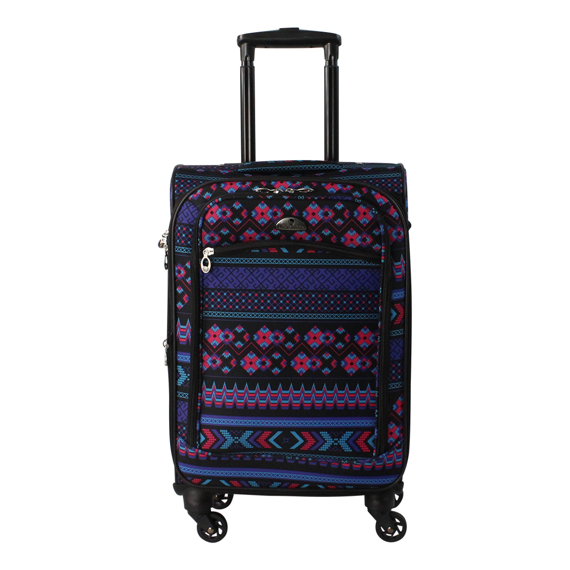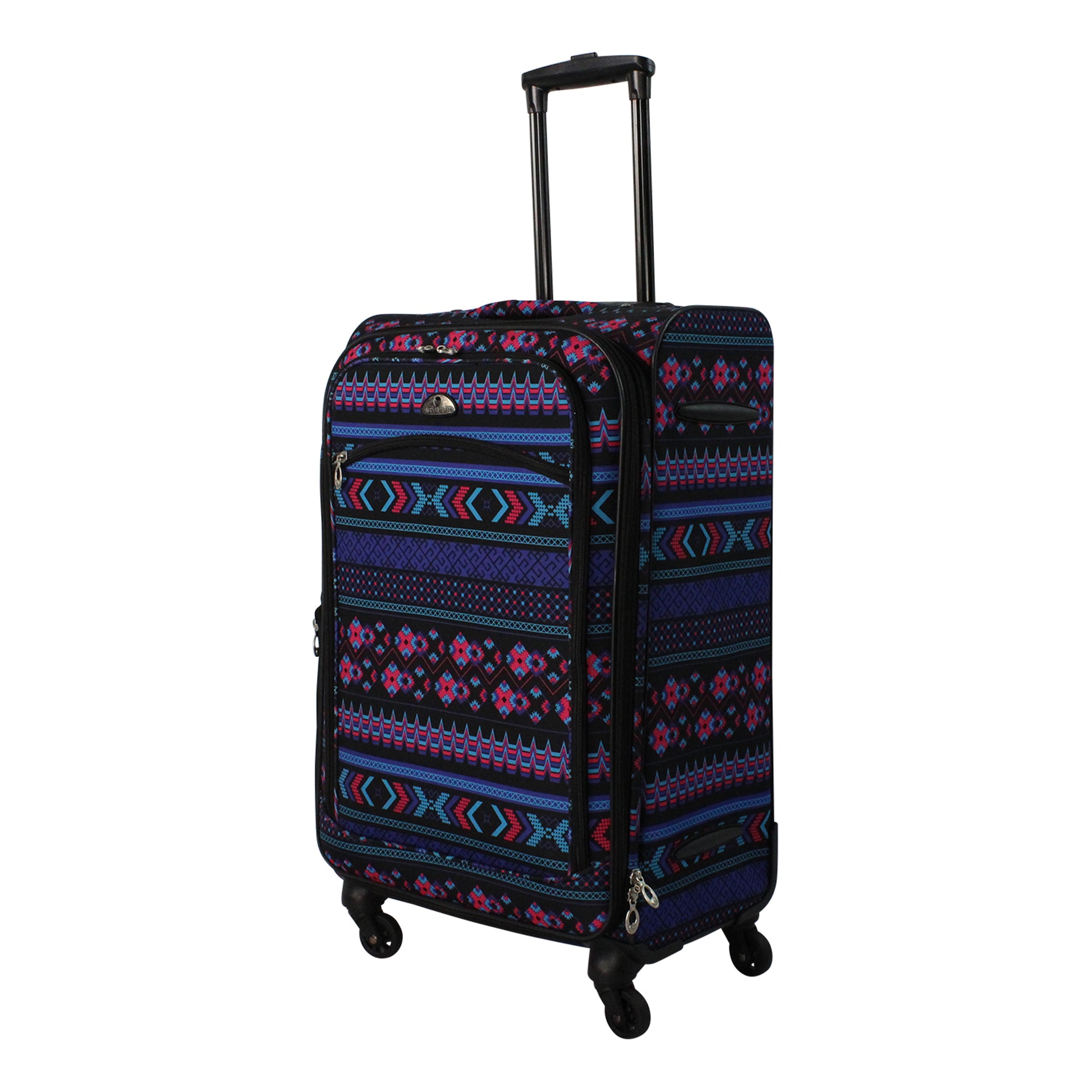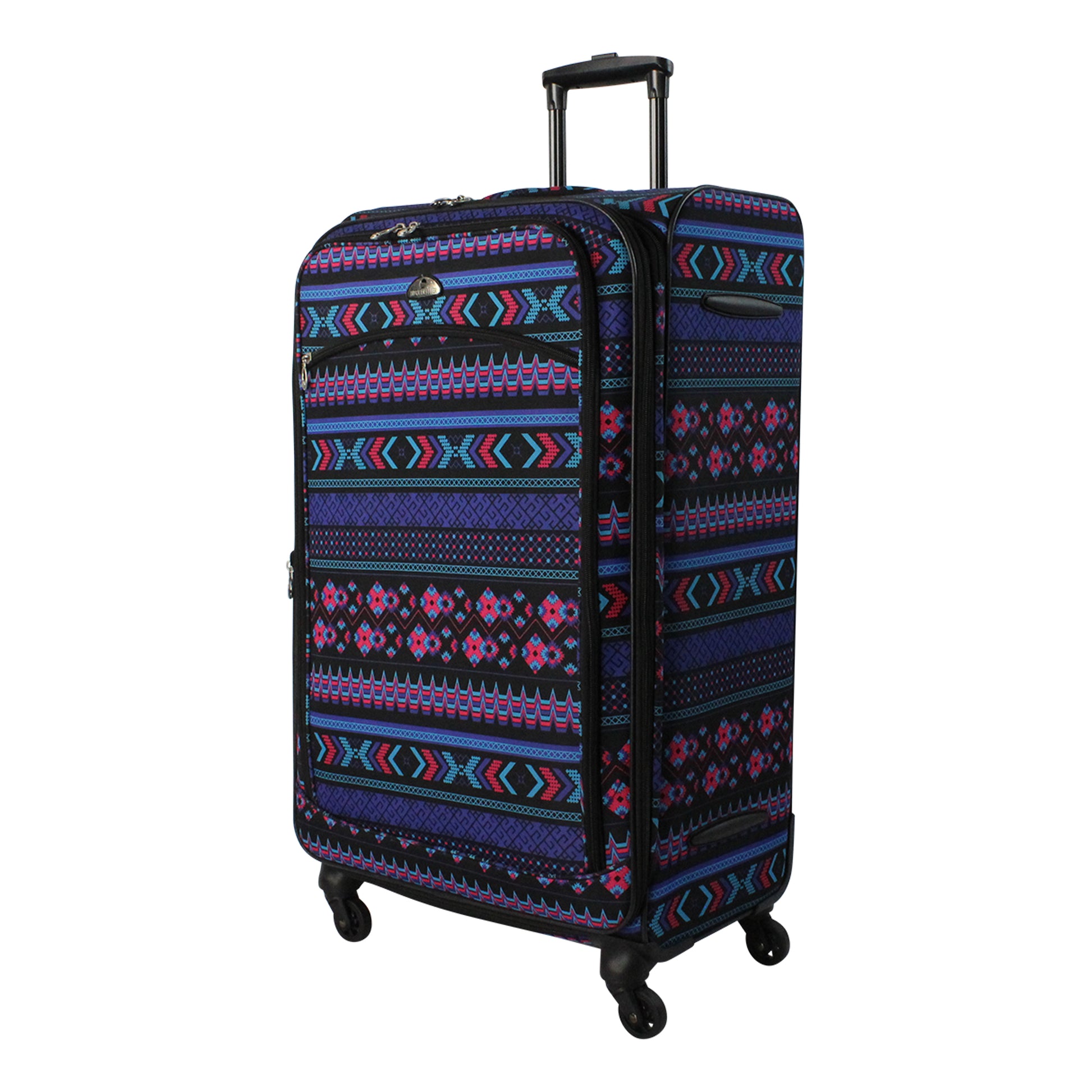 Upgrade your travel game with this vibrant 4-piece spinner luggage set from American Flyer, designed for durability, convenience, and standout style. Featuring a bold multi-color tribal-inspired pattern, this luggage not only makes packing easier but also ensures you’ll never lose sight of your bags at baggage claim.